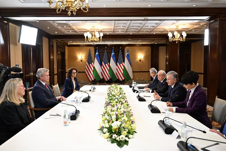 Президент матбуот хизмати хабар беришича, давлат раҳбари АҚШ Сенатида (Конгресснинг юқори палатаси) Марказий Осиё бўйича кокуснинг ҳамраиси, сенатор Стив Дейнс билан алоҳида музокаралар ўтказди.
