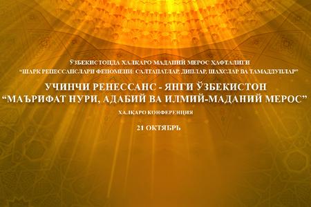 22 Октябрь22.10Свет просвещения «Третьего Ренессанса» в рамках Недели культурного наследия в Ташкенте -